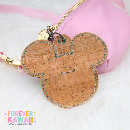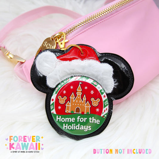 Christmas Mouse Button Holder Keychain | Holiday Park Bag Accessory | Fits 3” Celebration Buttons | Green Glitter or Red Vinyl