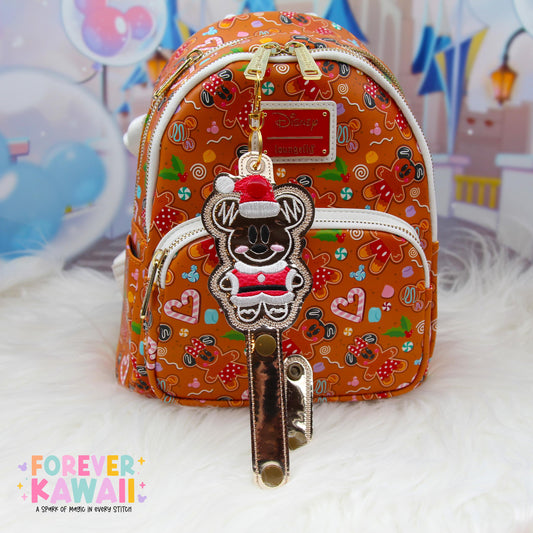 Mouse Gingerbread Snap Tab – Disney Bag Charm, Christmas Keychain, Holiday Gift, Cute Embroidered Vinyl Charm, Park Bag Accessory