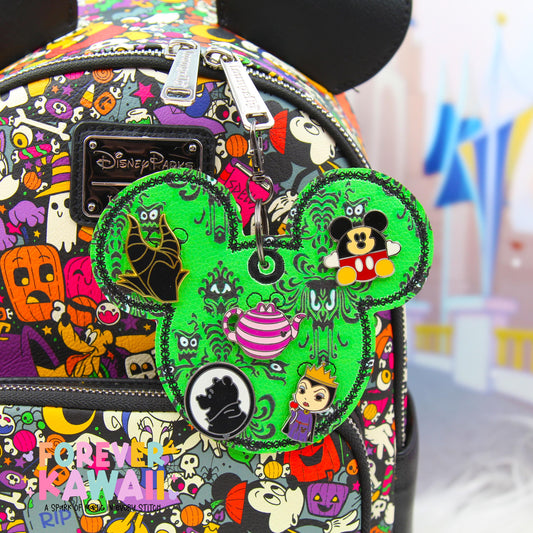 Haunted Mansion Wallpaper Pin Trading Keychain | 5 Pin Holder | Disney Ride-Inspired Bag Charm | Pattern Placement Will Vary | Non-Glitter